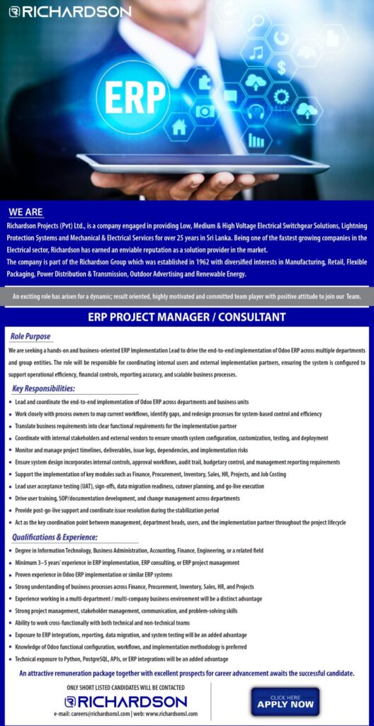 We Are Hiring: ERP Project Manager / Consultant