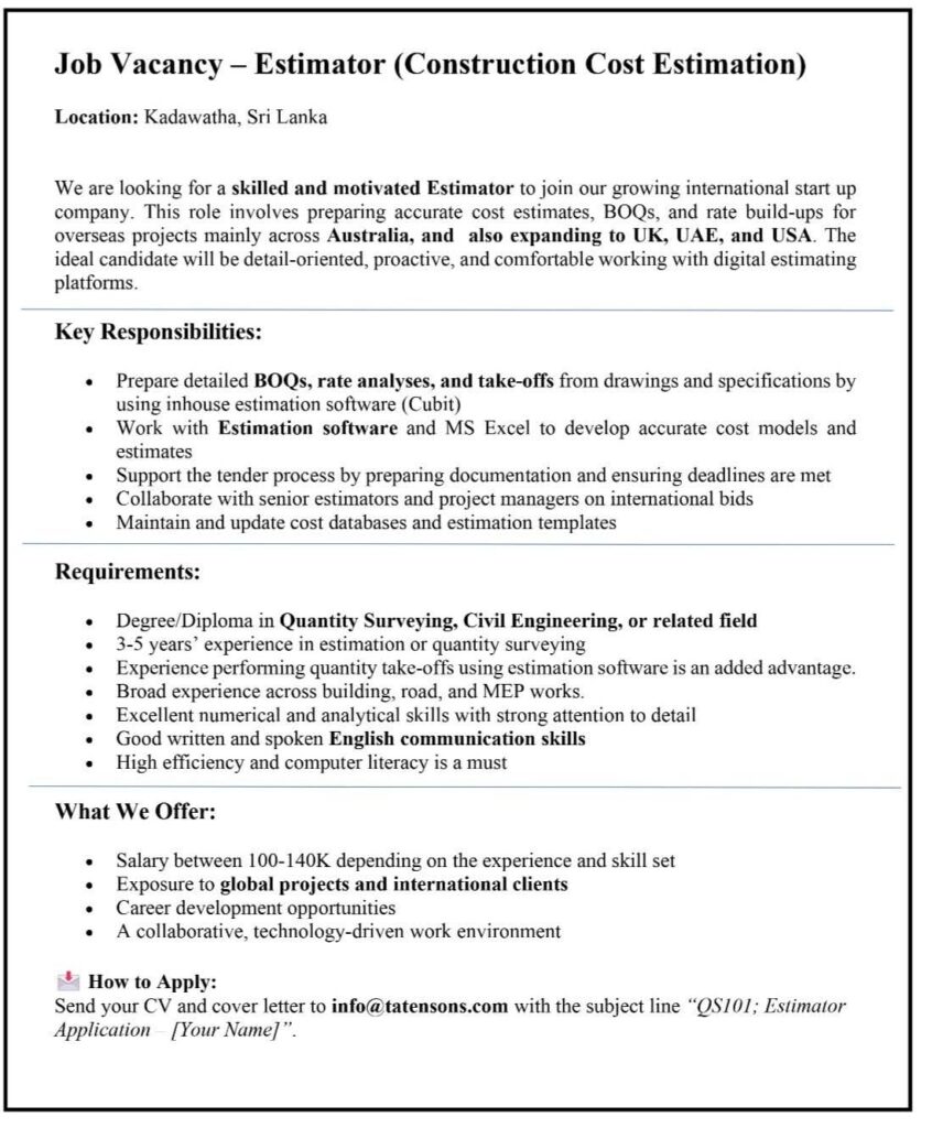 Qualifications:- Quantity Surveyor/ Civil Engineering