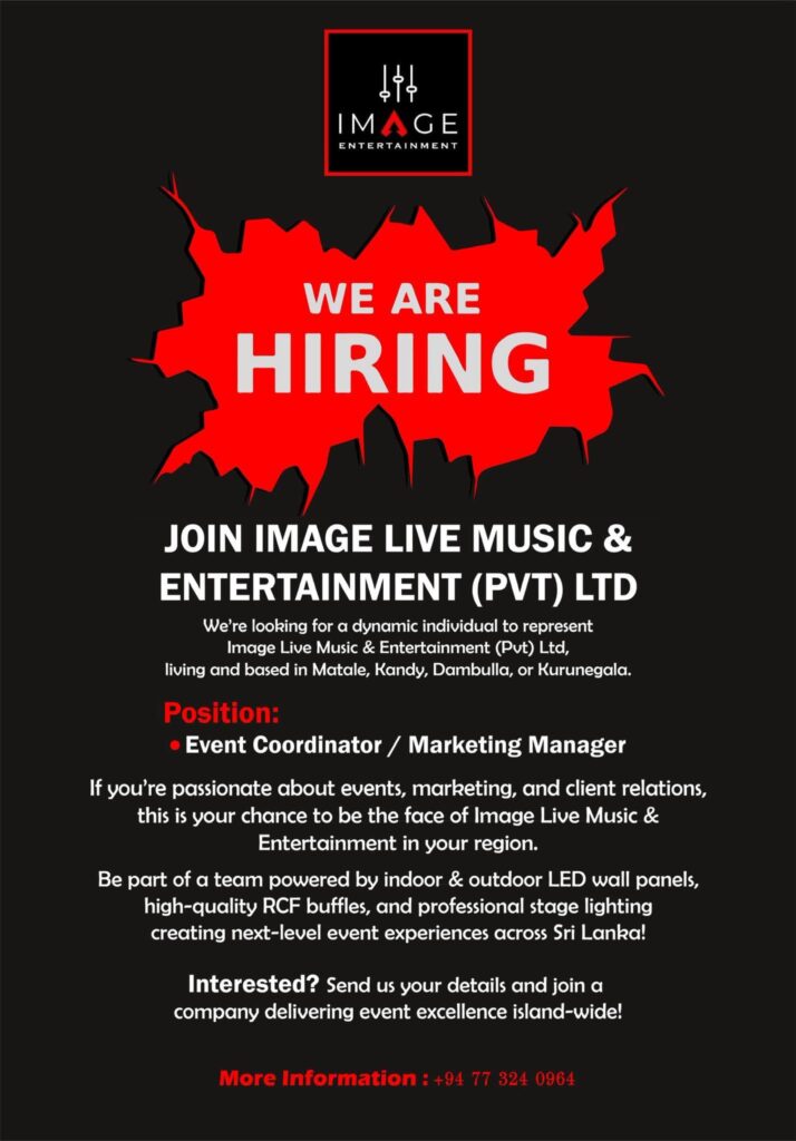 🌟 We’re Hiring – Join Image Live Music & Entertainment (Pvt) Ltd! 🌟