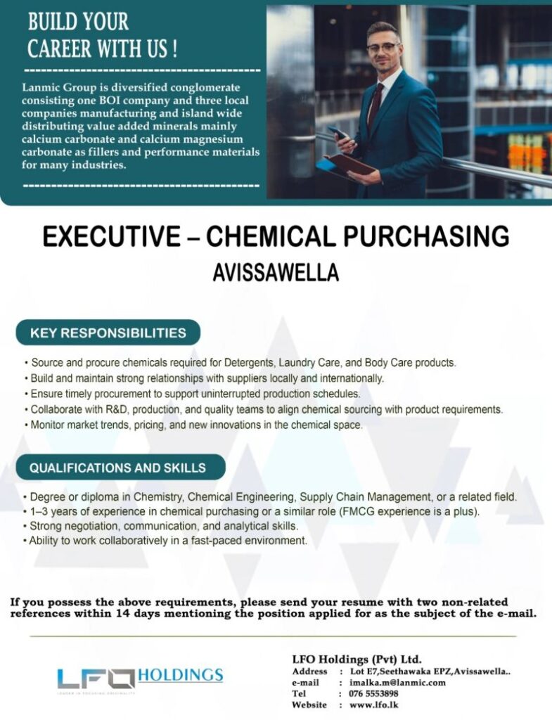 Executive β Chemical Purchasing Job Alert in Avissawella!