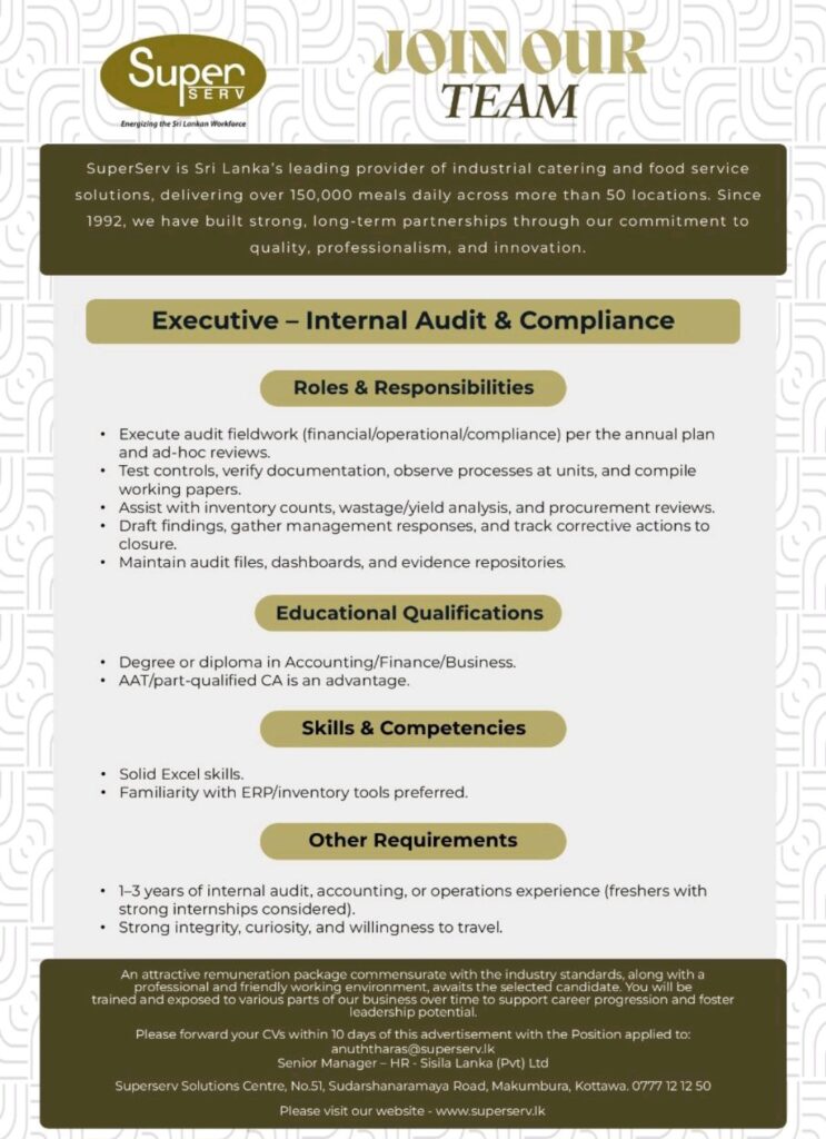 We’re Hiring: Executive – Internal Audit & Compliance