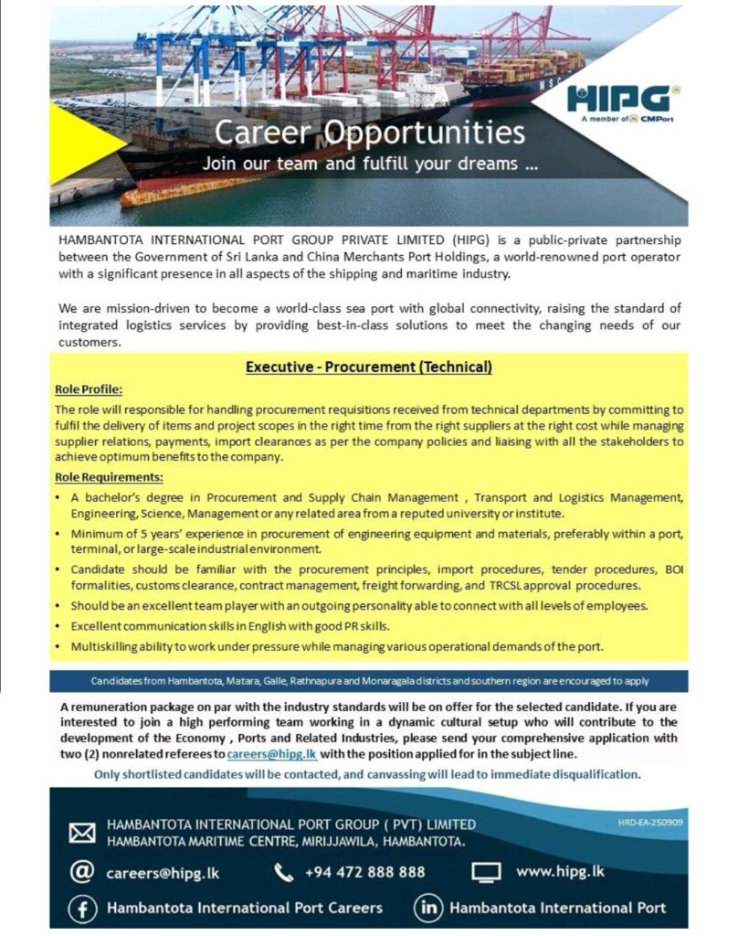 Apply now :- careers@hipg.lk