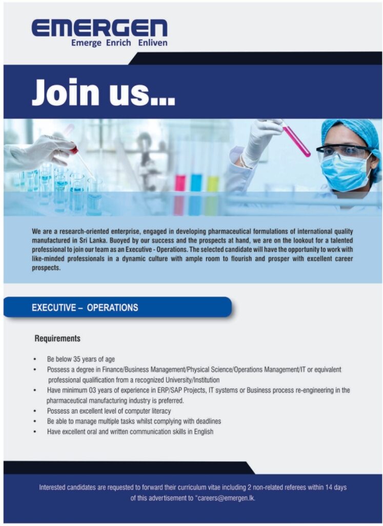 Exciting career opportunities available at Emergen Life Sciences (Private) Limited – a subsidiary of Emerchemie NB (Ceylon) Limited