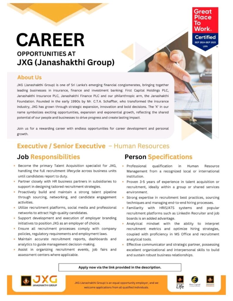 At JXG (Janashakthi Group), our people are our greatest strength. Come grow your career with JXG