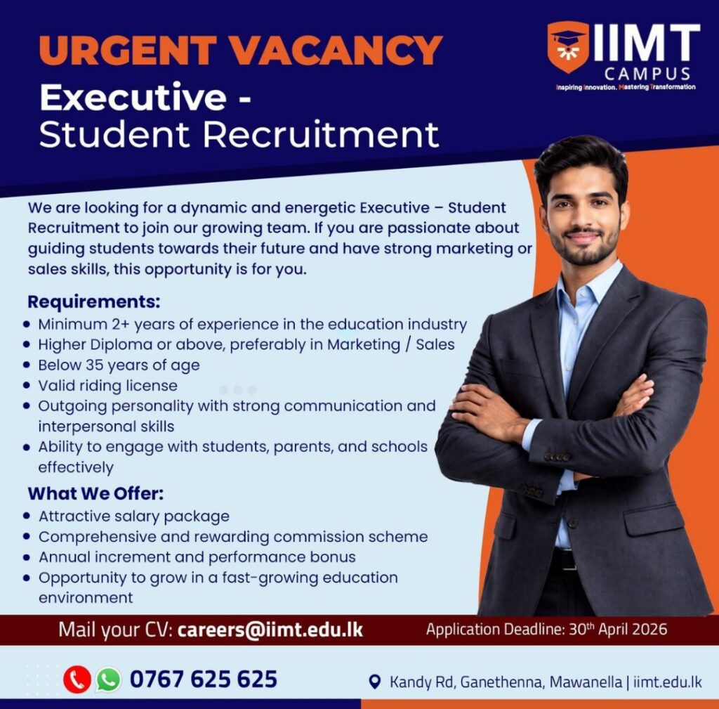 Apply now: Mail your CV to careers@iimt.edu.lk