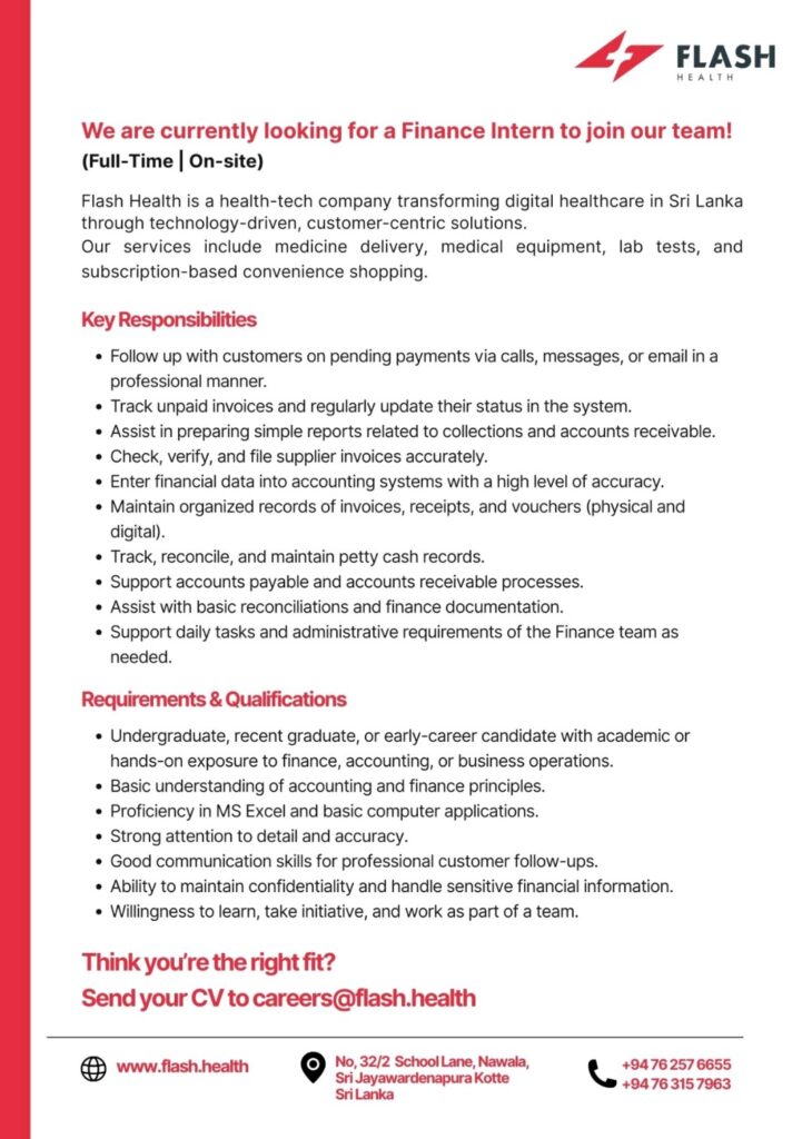 From supporting collections and receivables to maintaining accurate records and working closely with our finance team, this role offers practical exposure in a fast-growing health-tech environment.