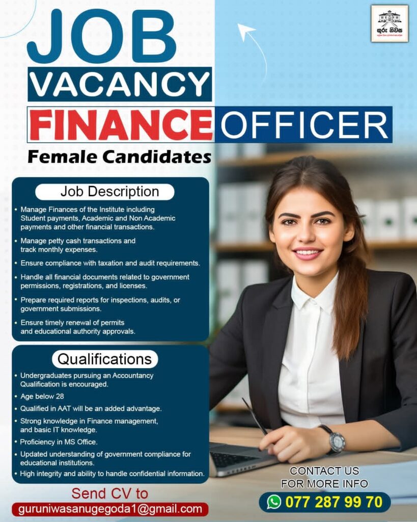Join Guru Niwasa Educational Institute Pvt Ltd, one of Sri Lankaβs leading education brands, as a Finance Officer and play a key role in managing our financial operations.