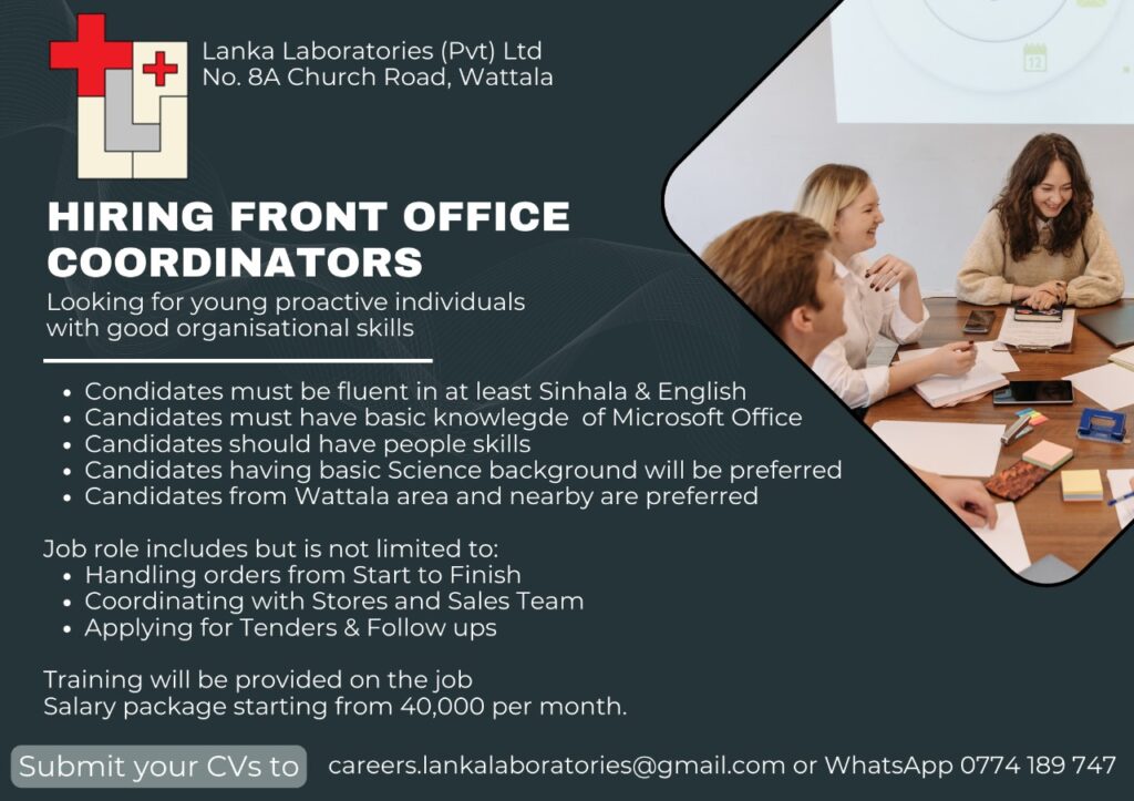 Multiple vacancies available for the role of Front Office Coordinators at a Surgical Imports company located in Wattala.