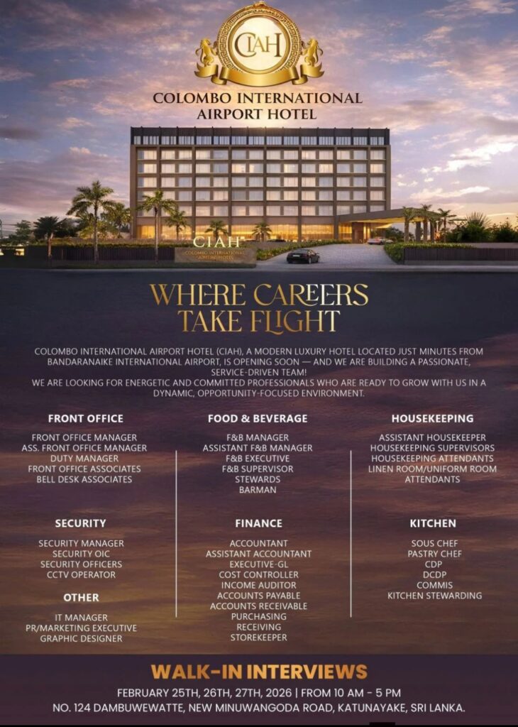 Exciting opportunities await at Colombo International Airport Hotel (CIAH) a modern luxury hotel opening soon near Bandaranaike International Airport.