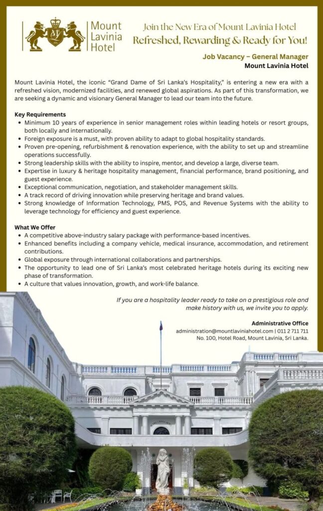 We are seeking a visionary General Manager with global experience, strong leadership, and a passion for excellence to guide our legendary hotel into its future.
