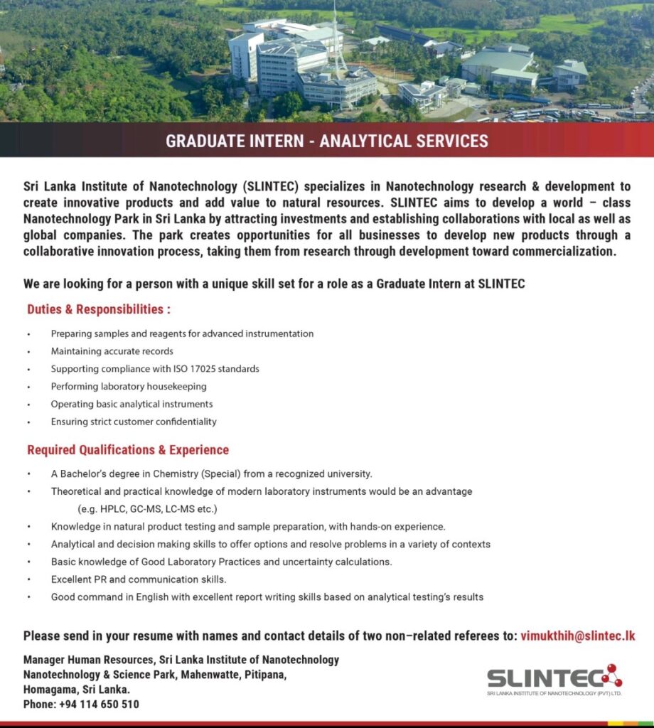 Apply now! Send your resume to vimukthik@slintec.lk.