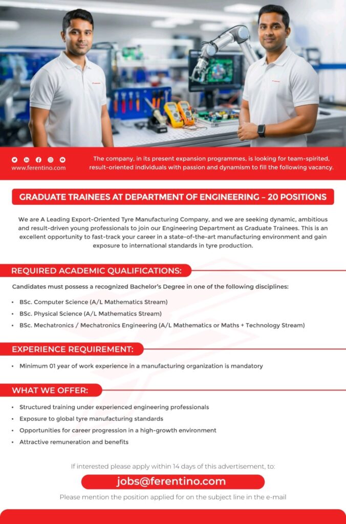 Interested candidates are invited to forward their CV to jobs@ferentino.com within 14 days of this advertisement, indicating “Graduate Trainee Engineering” in the subject line.
