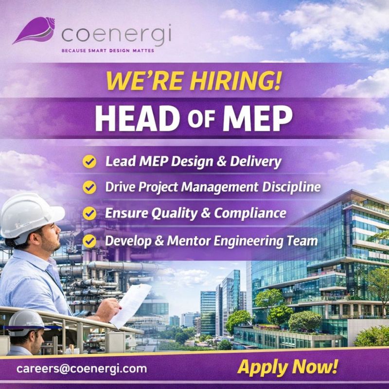 We’re looking for an experienced and visionary Head of MEP to lead our Mechanical, Electrical, and Plumbing (MEP) function and drive excellence across design, delivery, and team leadership