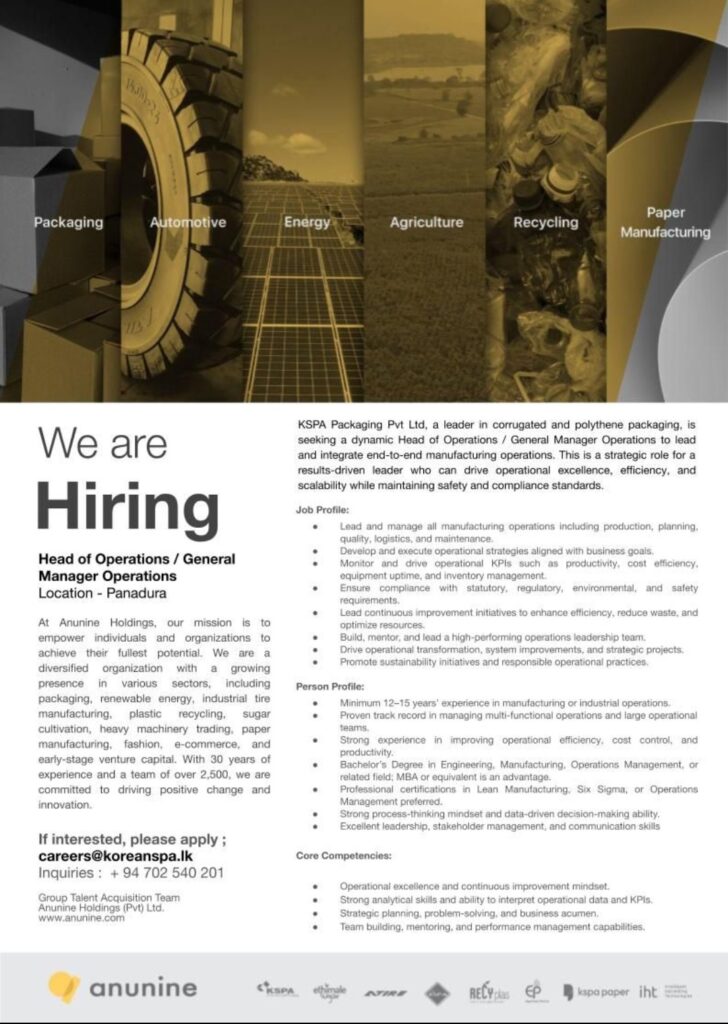 We are currently looking for an exceptional leader to join the KSPA Packaging team in Anunine holdings. We are on the hunt for a high-caliber professional to take the reigns as our Head of Operations / General Manager (Operations).