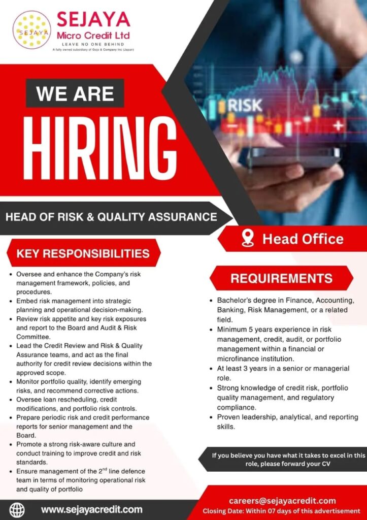 If you feel you are the right fit, please send your updated CV with references to careers@sejayacredit.com