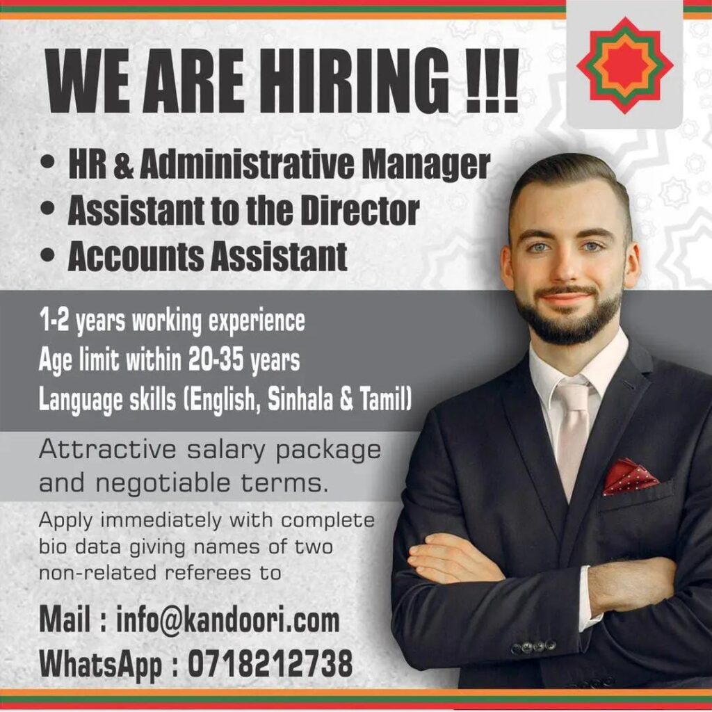 HR/ Accounts/ Assistant/ Waiter / Cashier / Cook / Stores / Supervisor