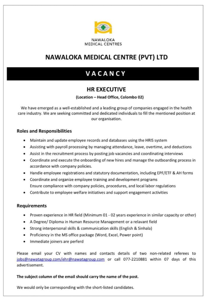 Sri Lanka Human Resources job vacancy