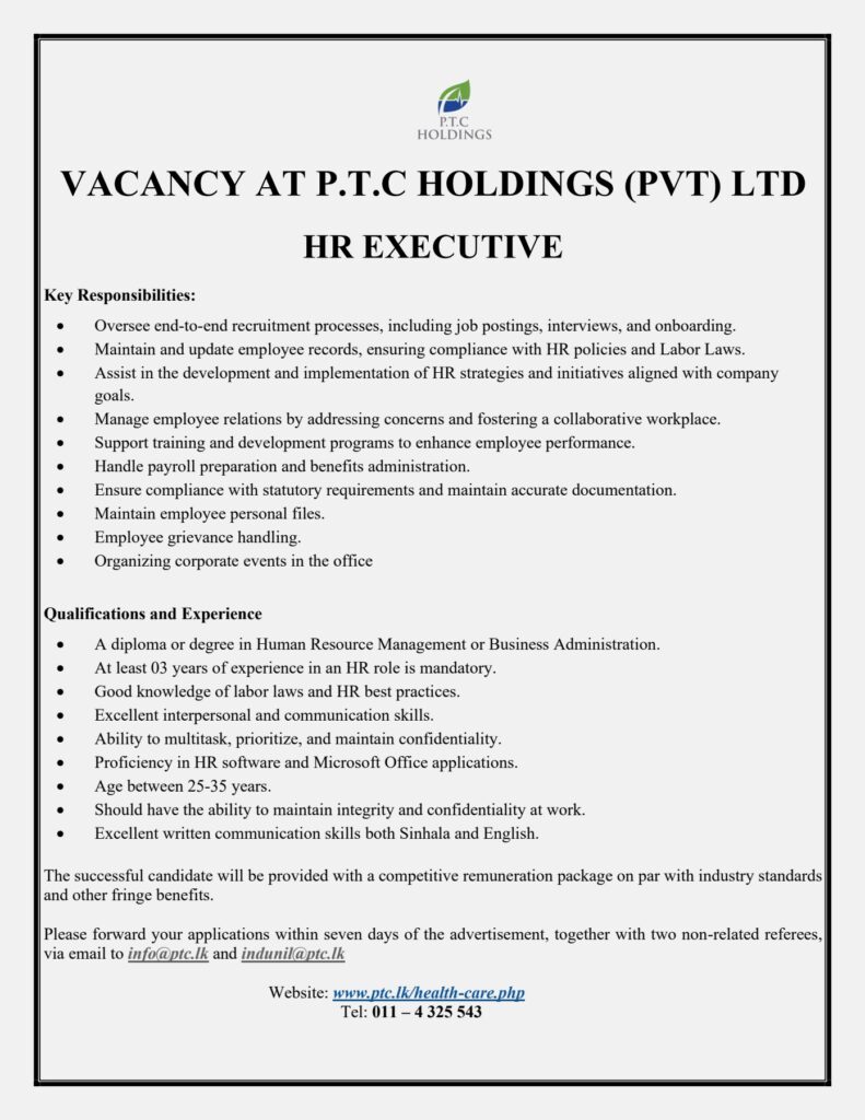 Apply now :- info@ptc.lk or indunil@ptc.lk