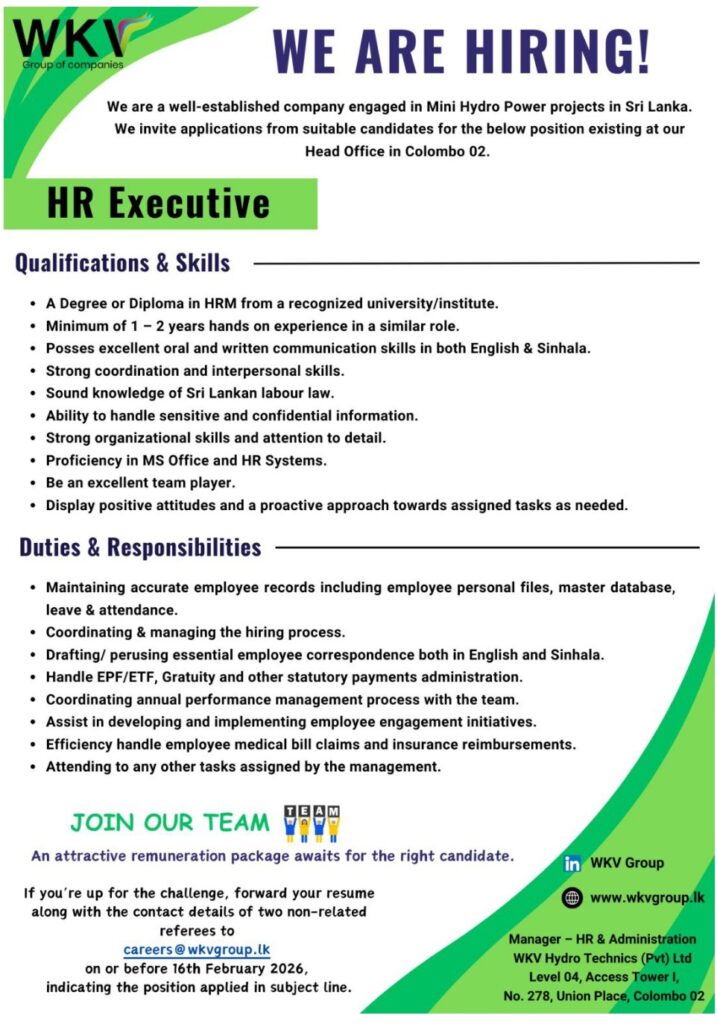 Apply Now :- careers@wkvgroup.lk