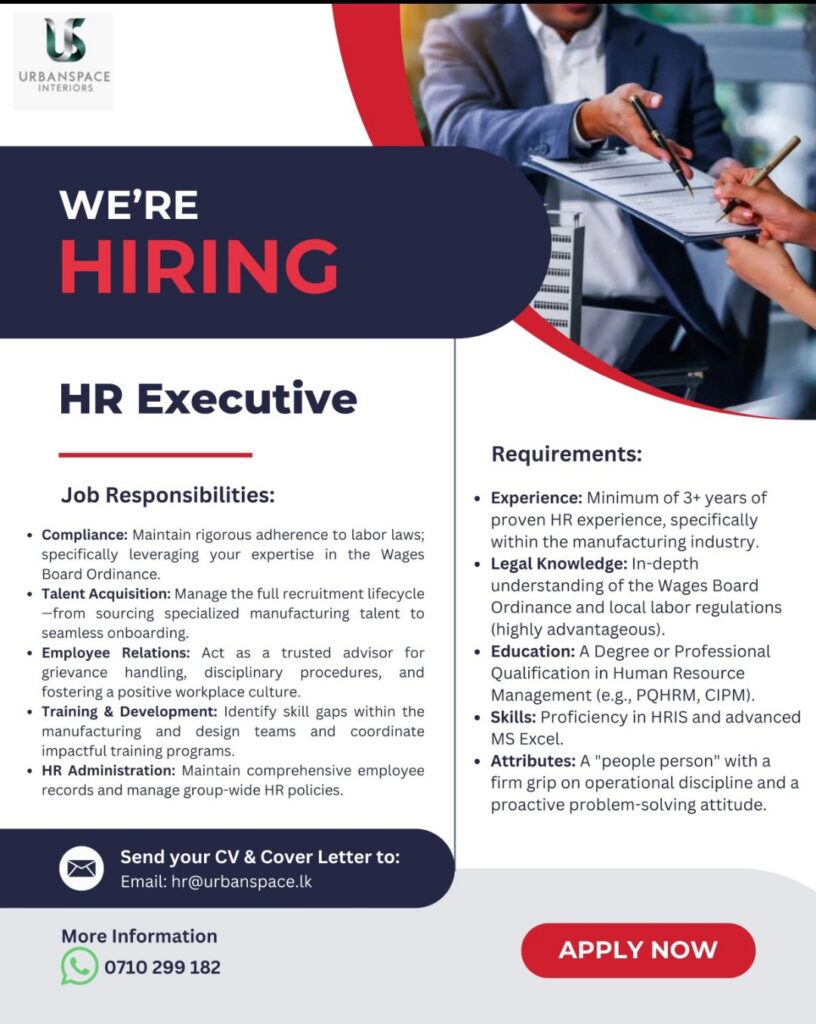 Apply now :- hr@urbanspace.lk