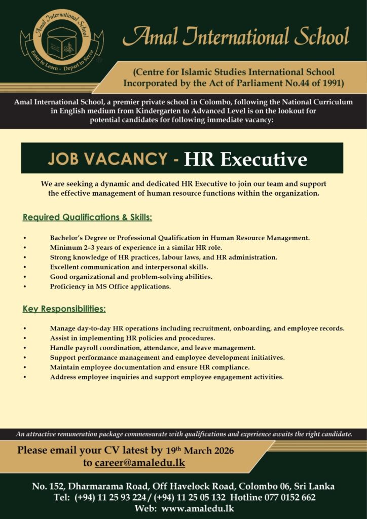 Apply now :- careers@amaledu.lk