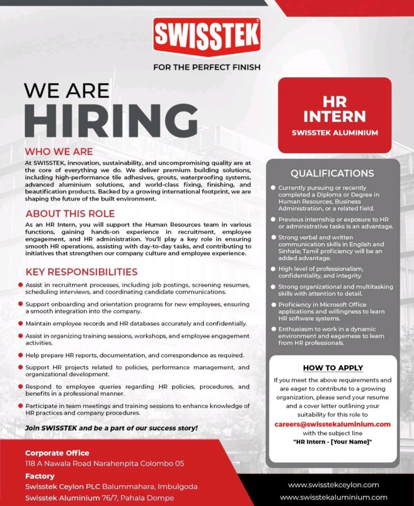 Join our team as an HR Intern at Swisstek Alumininum Ltd and gain real-world experience in a supportive and professional environment