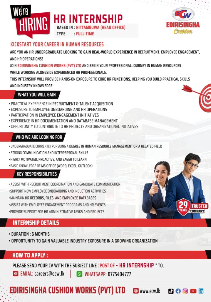 Apply now:- careers@ecw.lk