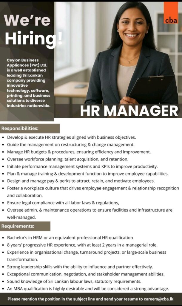 *We’re looking for a strategic and people-focused HR Manager to lead our HR operations and support our growing team.