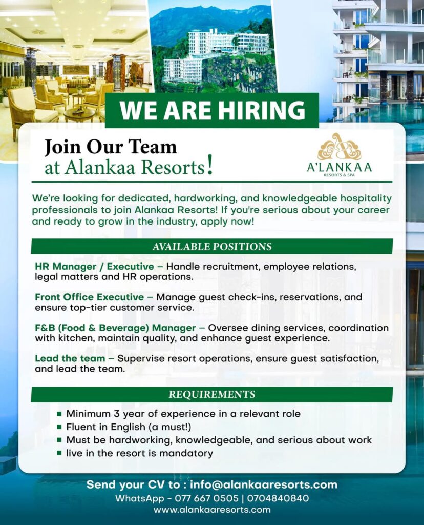 🌴 Join Our Team at Alankaa Resorts! 🌴