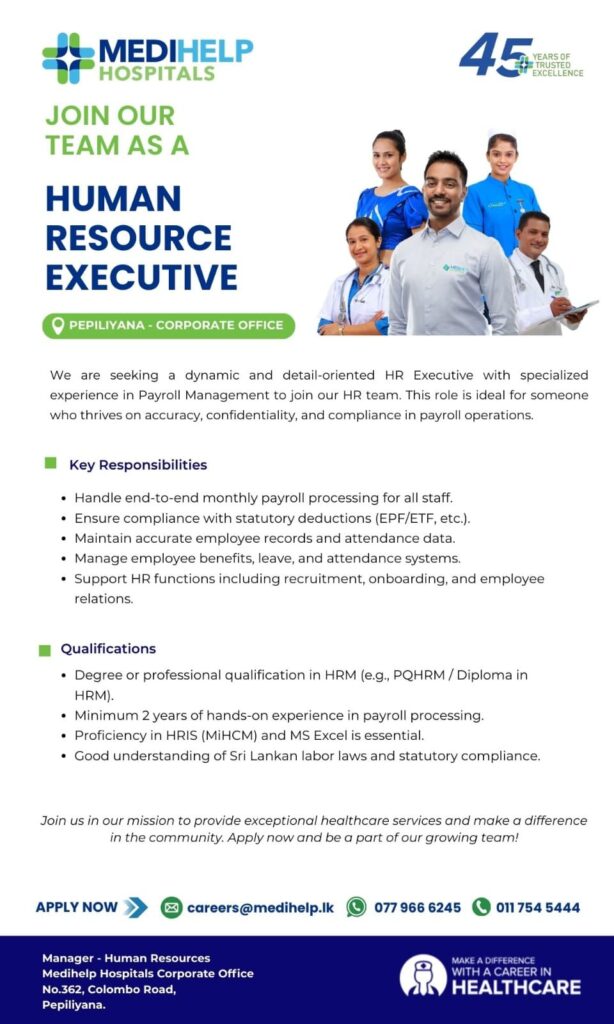 Apply Online:- careers@medihelp.lk