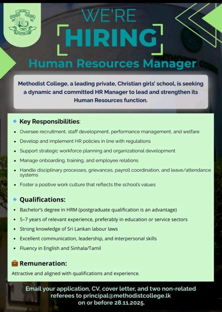 Apply now :- principal@methodistcollge.lk