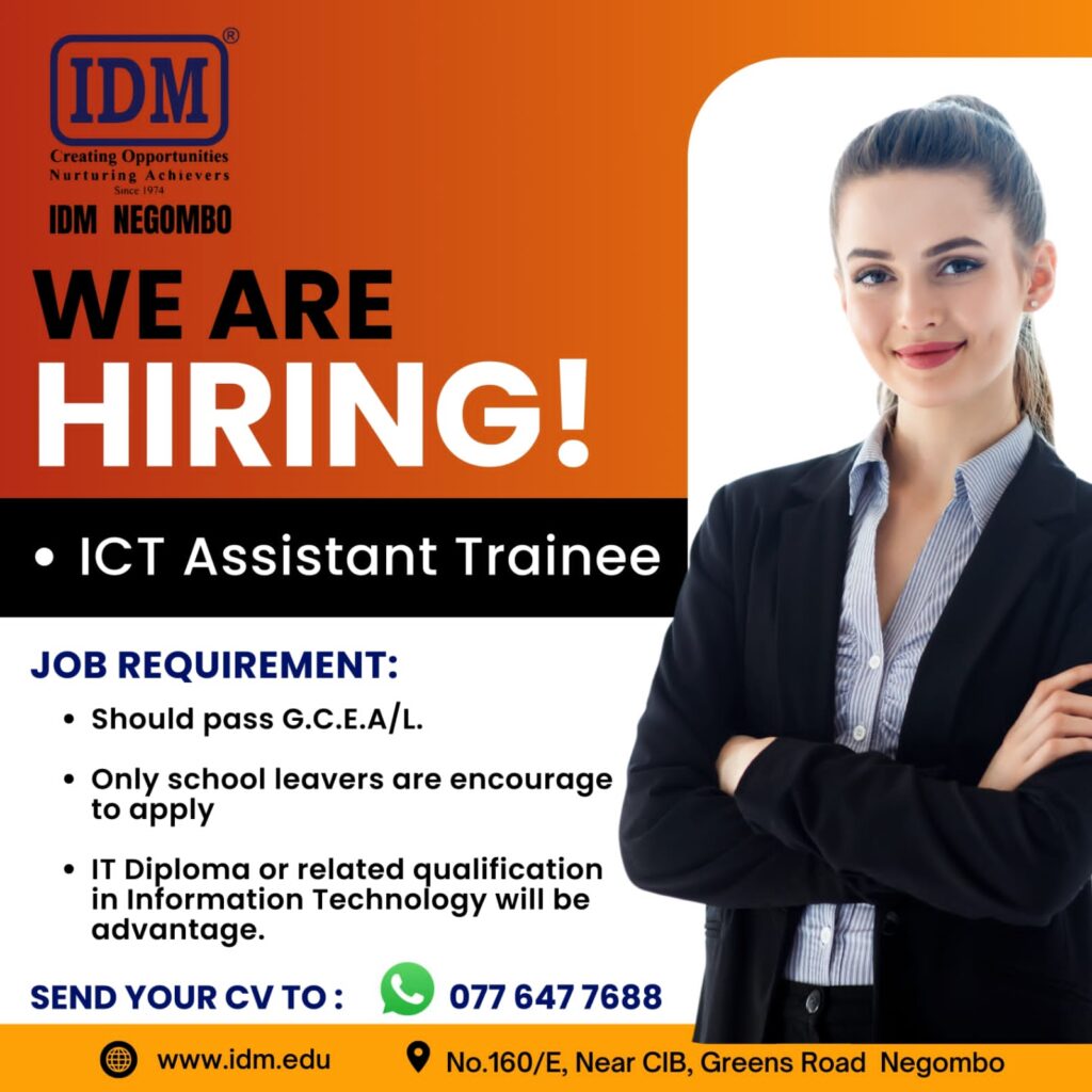 Assistant IT Jobs ICT Assistant Trainee 9 months ago Company:- IDM Campus Location:- Negombo send your CV:- 0776477688 Negombo Job Vacancy Sri Lanka IT Job Vacancies Post navigation Previous: Receptionist/ Sales CoordinatorNext: Full Stack Web Developer Related Vacancies IT Jobs Junior Executive – IT Support & Systems 4 hours ago Assistant Education Research Research & Communication Assistant 4 hours ago IT Jobs Remote Work opportunity Associate Mobile App Developer & Mobile App Developer 2 days ago
