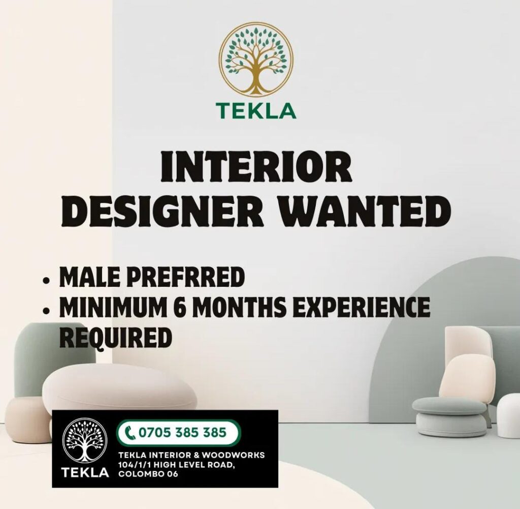 Send your CV and portfolio to info@teklainterior.com/+94 705 385 385 with the subject line “Interior Designer Application β Colombo