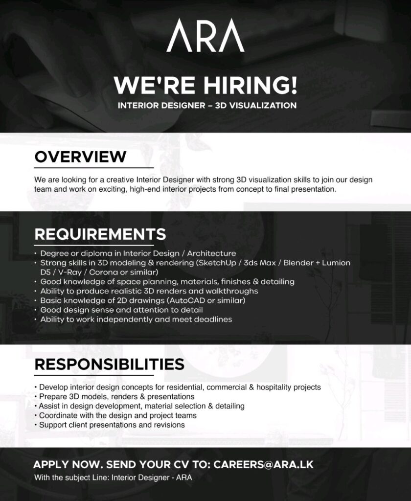 Apply now: careers@ara.lk