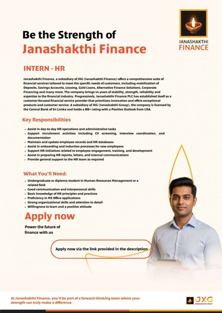 We are looking for a passionate HR Intern to join the Janashakthi Finance family. Gain hands-on experience in talent management and culture building with one of Sri Lanka’s most trusted financial institutions.