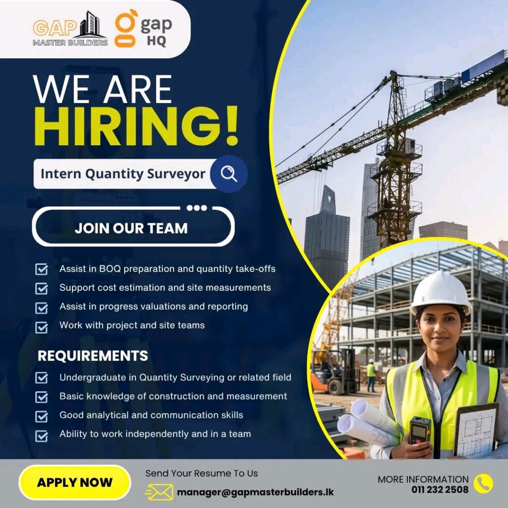 Apply Now :- Manager@gapmasterbuilders.lk