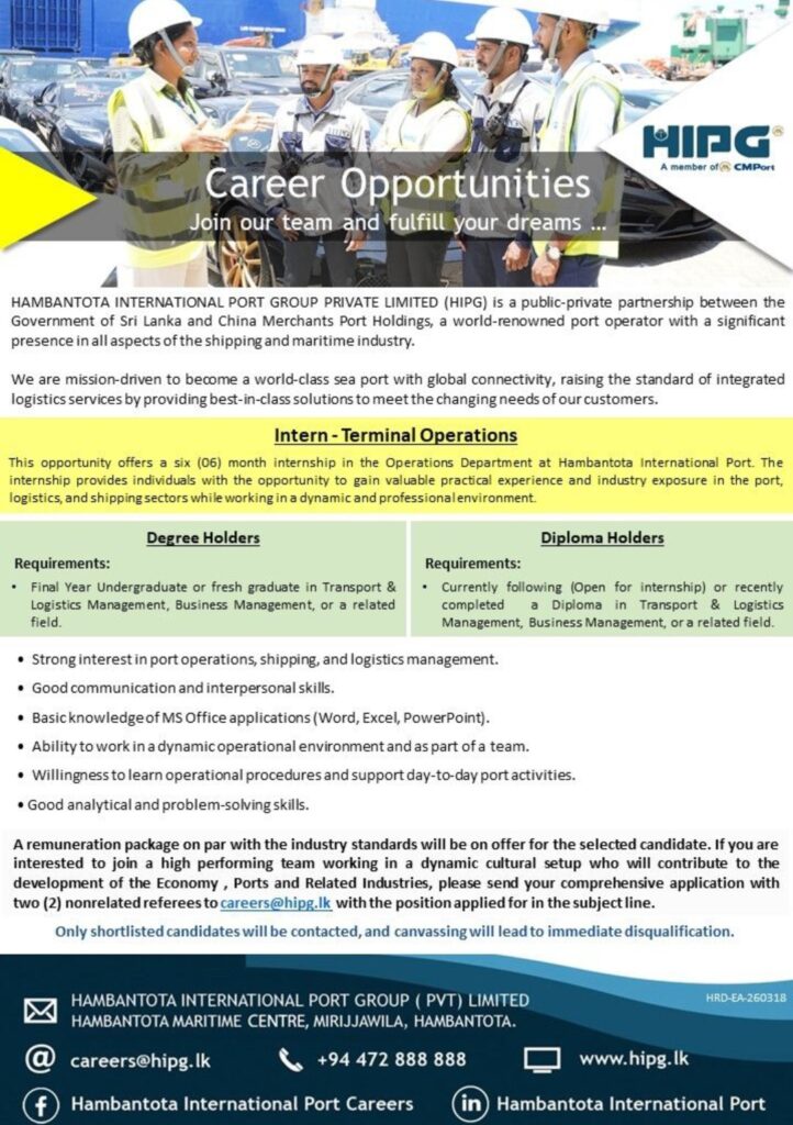 Apply Now :- careers@hipg.lk