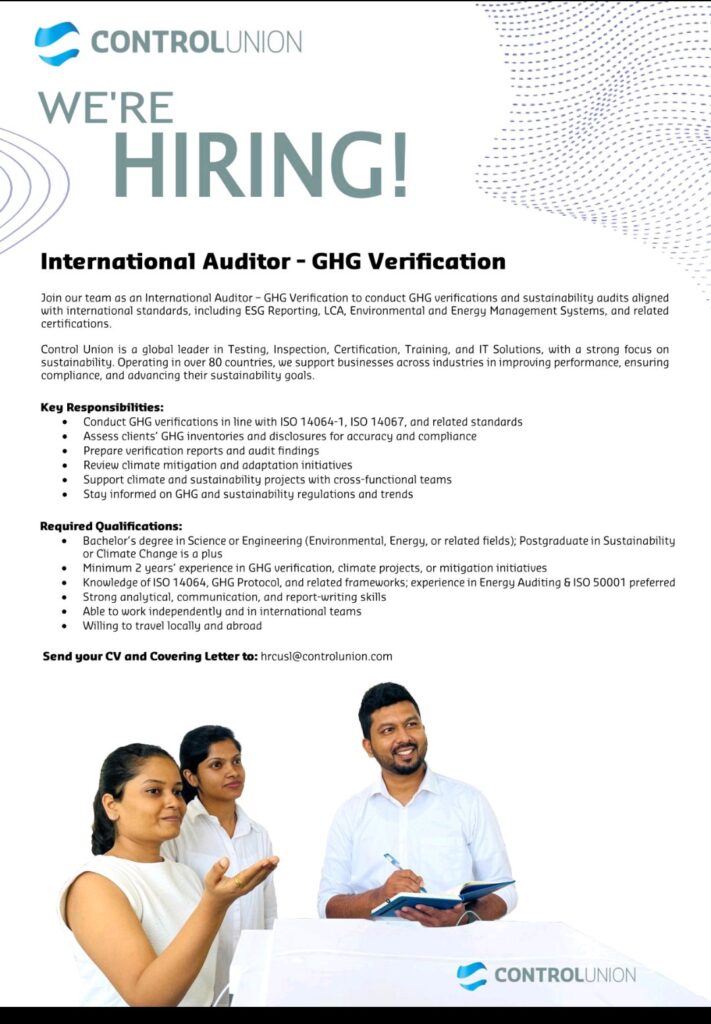 Control Union Inspections (Pvt) Ltd. – Sri Lanka is looking for an International Auditor – GHG Verification.