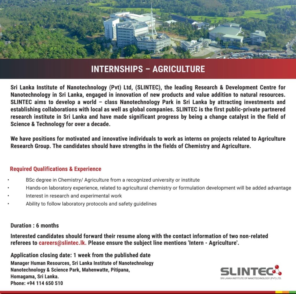 SLINTEC is looking for motivated and innovative individuals to join our Agriculture Research Group as Interns. If you have a background in Chemistry or Agriculture and a passion for cutting-edge research, this is your chance to work at the forefront of nanotechnology in Sri Lanka.