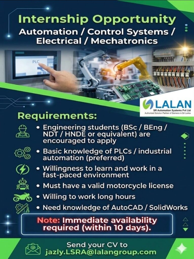 Internship Opportunity – Automation / Control Systems / Electrical / Mechatronics