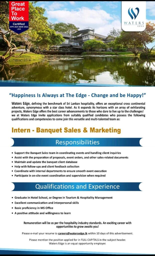 Apply within 10 days by sending your CV to careers@watersedge.lk