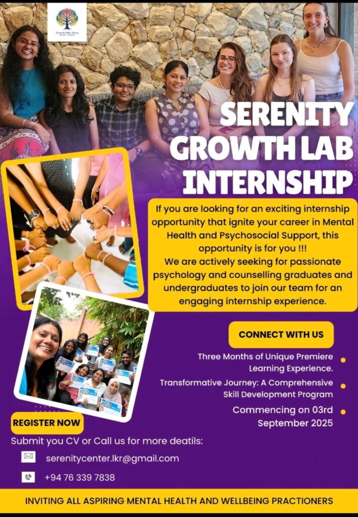 Join the “Serenity Well-being Growth Lab Internship” A 3-month transformative journey designed for passionate psychology and counselling students!