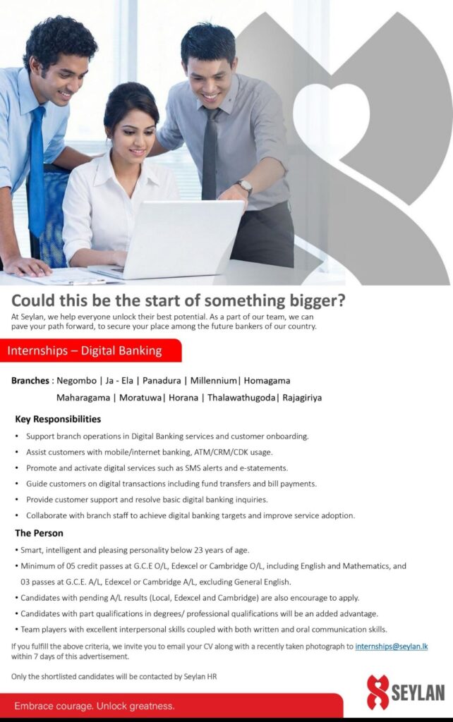 Begin your professional journey with Seylan Bank.