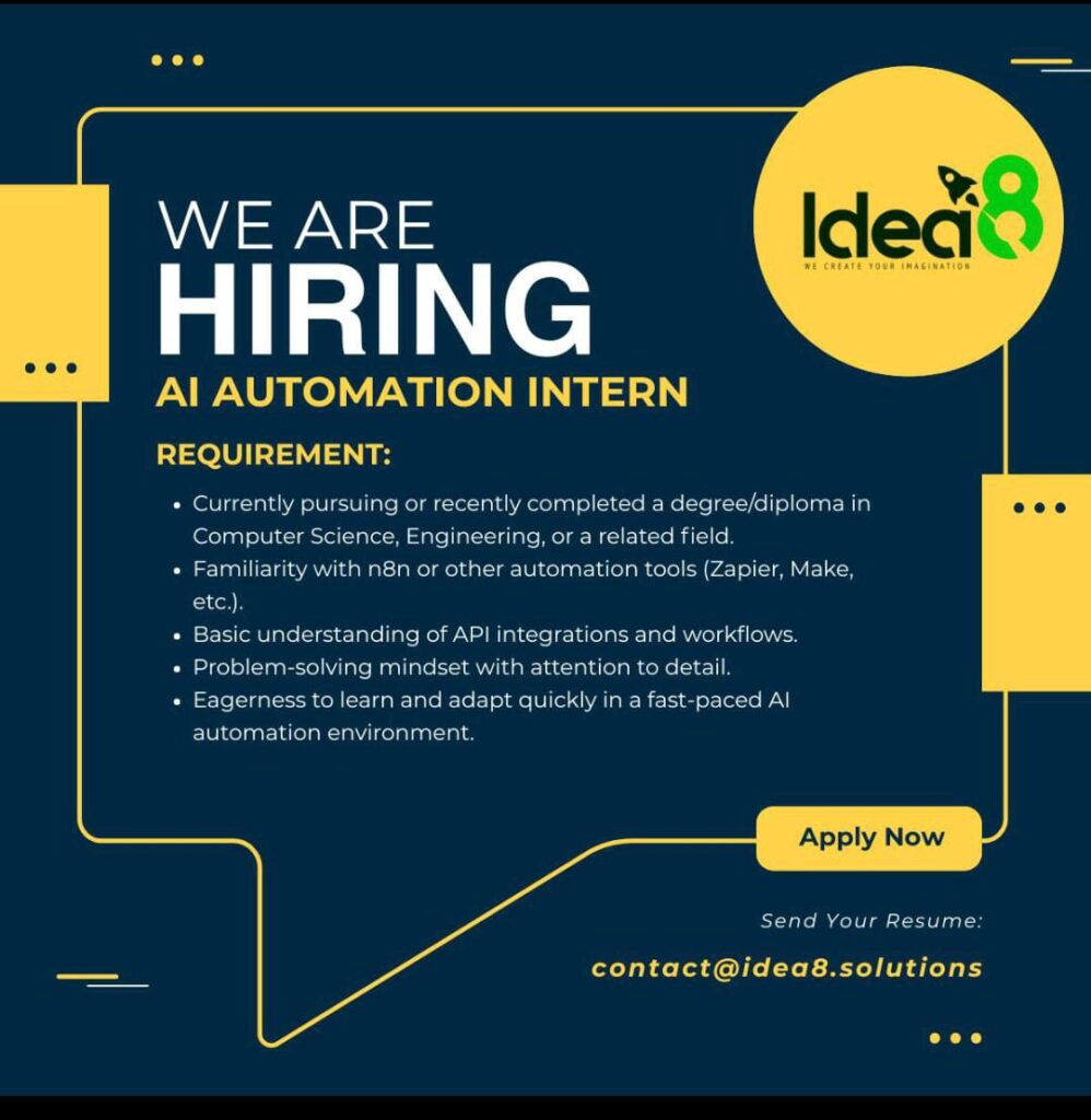 2 Al Automation Intern (Specializing in n8n) – Build smart automation workflows and Al-driven solutions.