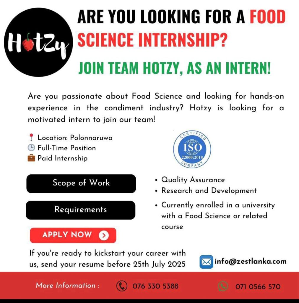 Send your CV:- info@zestlanka.com