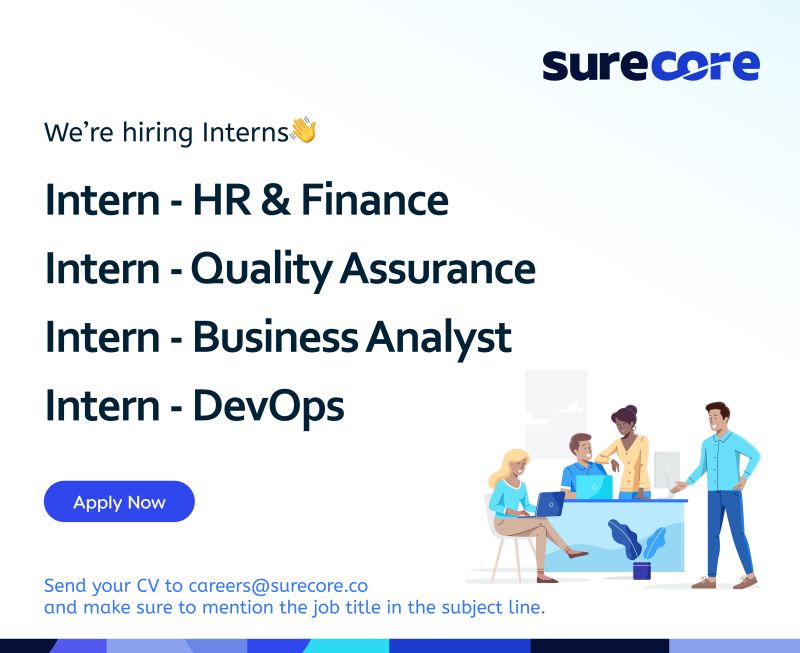 We have exciting internship opportunities available in: – HR & Finance – Quality Assurance – Business Analysis – DevOps Apply by emailing your CV to careers@surecore.co