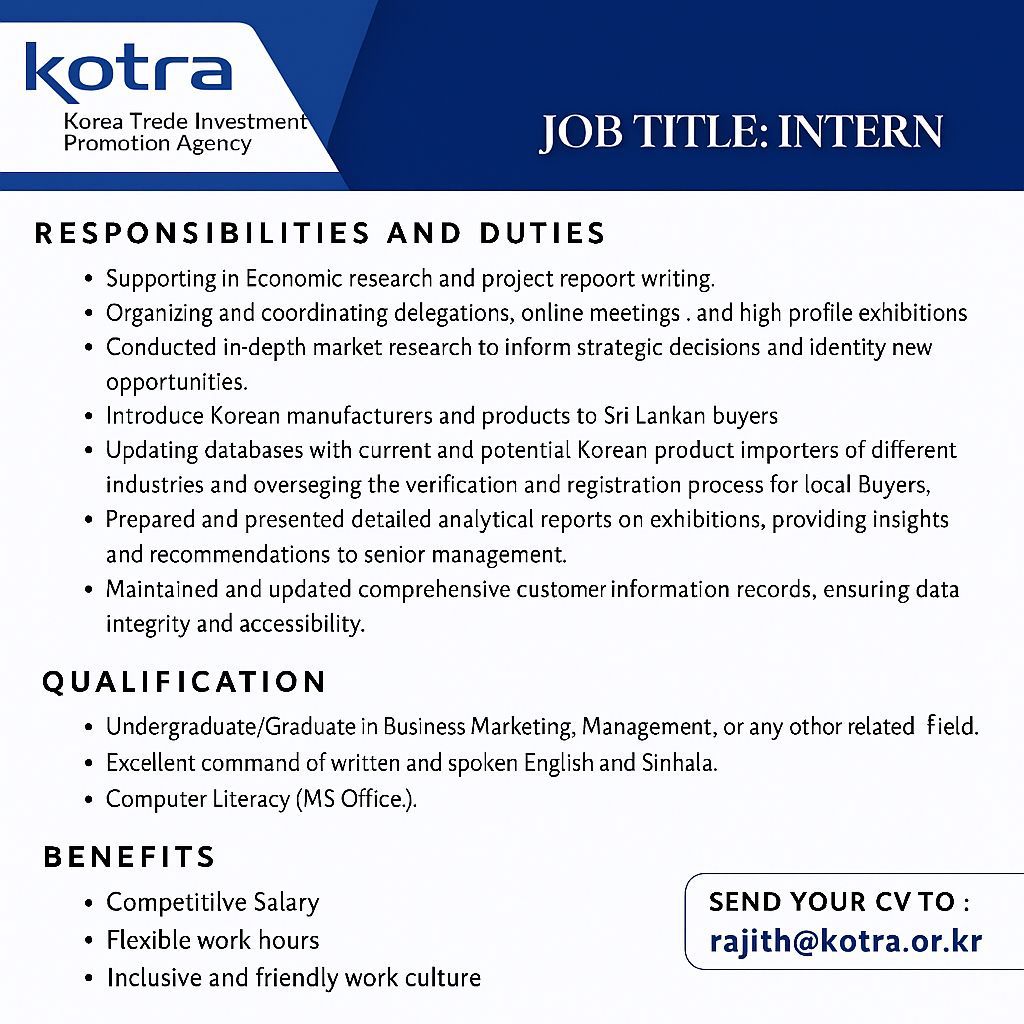 Internship Opportunity at KOTRA Colombo – Korean Embassy Commercial Section