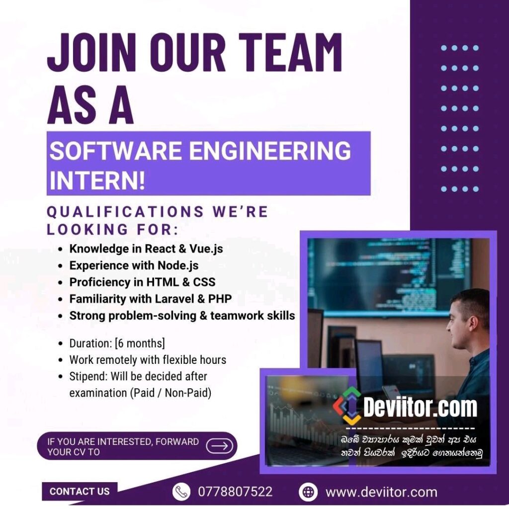 Sri Lanka IT job vacancy Sri Lanka internship job vacancy