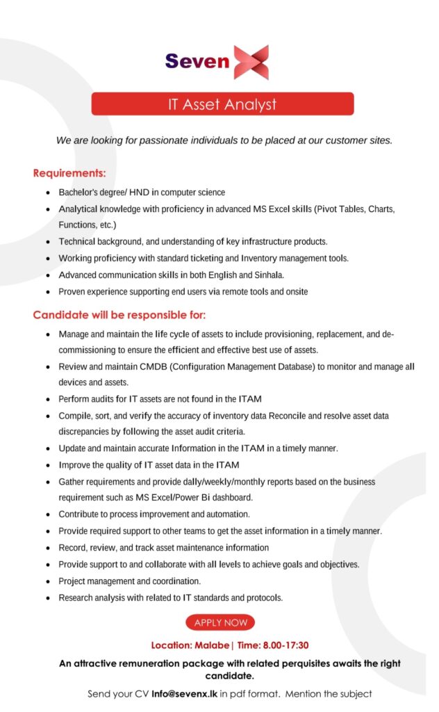 Apply Now:- info@sevenx.lk