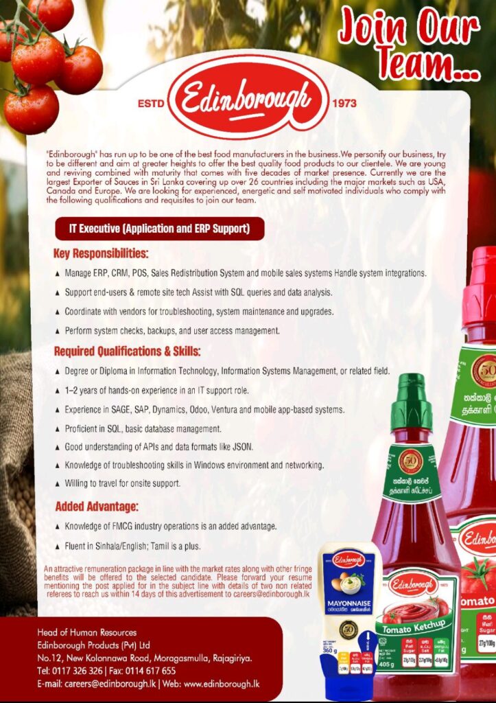Apply now :- careers@edinborough.lk